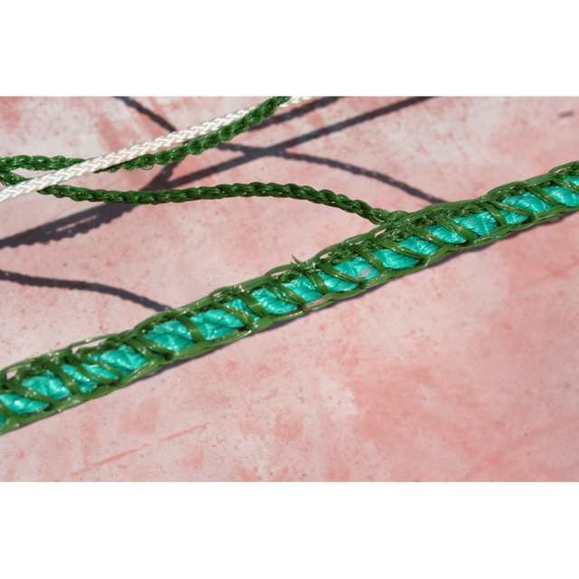 Bordatura perimetrale di rinforzo per rete di recinzione per campi da calcio, consistente in una corda di diam. 6 mm dello stesso materiale della rete.