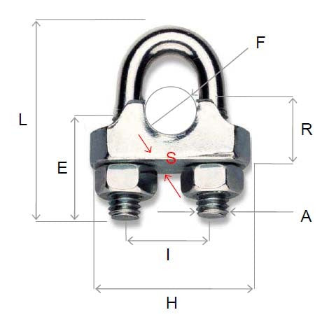 Kit composto da morsetti serracavo e una redancia per il fissaggio del cavo