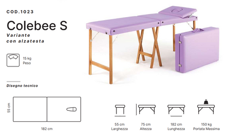 Lettino Medico Portatile con Alzatesta in legno di Faggio Richiudibile Colebee S Cod. 1023