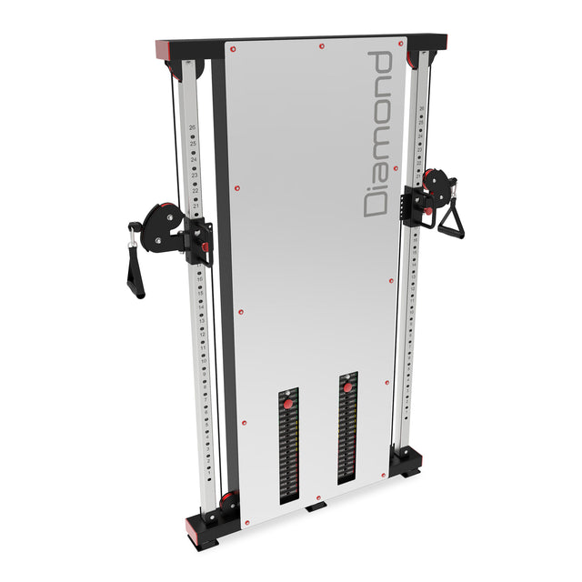 La Poliercolina a muro WS350-PED DIAMOND è stata progettata per garantire il massimo delle prestazioni occupando uno spazio minimo all’interno del proprio spazio di allenamento. Con un design compatto, questa versatile unità offre un’ampia gamma di esercizi, rendendola perfetta per diverse realtà come studi personal, fitness boutique, hôtellerie, home gym e palestre a consumo collettivo. La macchina ha 2 colonne indipendenti, ciascuna con un pacco pesi di 90 Kg. Le pulegge, dotate di cuscinetti a sfera per un movimento fluido e continuo, sono regolabili su ben 26 altezze offrendo la possibilità di eseguire una vasta gamma di esercizi per allenare diversi gruppi muscolari. I cavi in acciaio anti-allungamento con capacità di carico fino a 1000 Kg. Il rivestimento elegante realizzato in vetro acrilico lucido ad alta brillantezza dona un look moderno e accattivante. Struttura robusta con sistema di fissaggio per garantire una posizione stabile durante l’allenamento. La macchina ed i suoi componenti sono realizzati in acciaio inossidabile ed alluminio, per una resistenza e una longevità superiori. Queste skills fanno sì che la WS350-PED non sia solo un macchinario funzionale ma anche un elemento di design che si integra perfettamente in qualsiasi ambiente fitness.