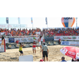 Impianto beach-volley in tubo di acciaio zincato diam. 50 mm, modello base polivalente per campi sabbia ed erba, dotato di bussole con attacchi rete scorrevoli, picchetti zincati con tiranti regolabili.