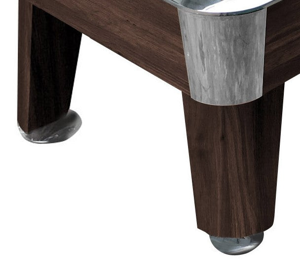 Si caratterizza per il mobile in color noce impreziosito da dettagli cromati questo tavolo da pool disponibile in due dimensioni, dall'aspetto classico che richiama quello dei modelli delle sale giochi americane.