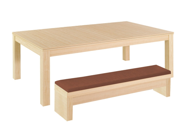 Una comodossima panca con seduta imbottita lunga 190 cm, profonda 33 cm e la seduta da terra è a 52 cm.