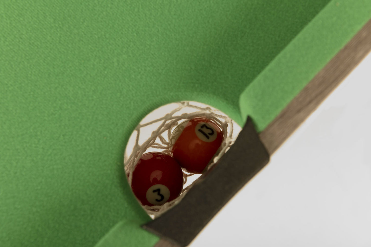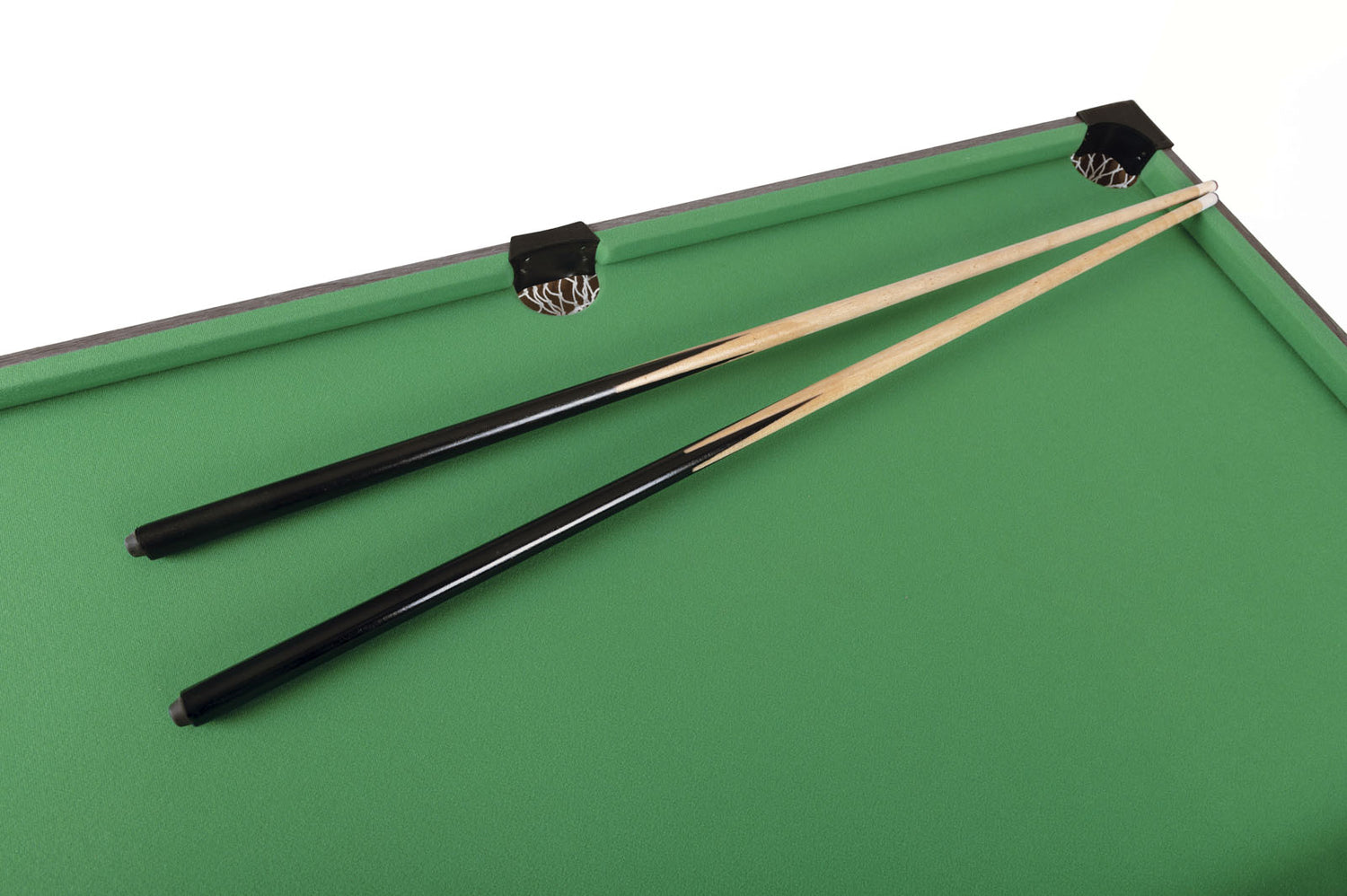 - Accessori in dotazione: 2 stecche legno, una serie di biglie diametro mm. 38, un gessetto, una spazzola per il panno.