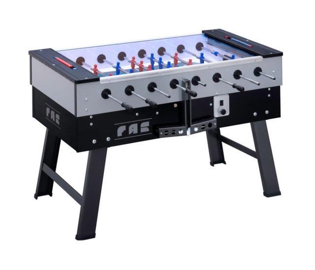 Il nuovo calciobalilla di FAS PENDEZZA dotato di copertura di protezione in vetro temperato, costituisce un’evoluzione del più classico calciobalilla Mod. CP, innanzi tutto, per il design più moderno ed essenziale e poi per le colorazioni Silver/nero e rosso/nero, che ne esaltano l’aspetto moderno. La chiusura superiore, garantisce una insonorizzazione al rumore durante le partite e costituisce una valida protezione contro il furto delle palline, limitando quindi gli interventi di manutenzione e garantendo pertanto maggiori incassi.