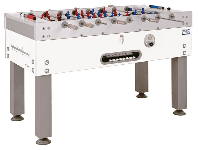 Realizzato su misura per i giocatori professionisti, World Champion 2.0 è la nuova versione di un modello da competizione che è ormai un classico del panorama mondiale dei tornei, oggi ulteriormente migliorato in qualità e caratteristiche di gioco! Nato nel 2004 sulla scia del Deluxe World Champion, il modello speciale utilizzato per le prime edizioni del torneo internazionale Garlando Weltmeisterschaft di Vienna, World Champion 2.0 si presenta con caratteristiche completamente rinnovate, per meglio rispondere alle esigenze dei partecipanti alle competizioni. Mobile realizzato in strati di compensato e mdf alternati e combinati insieme per ottenere una struttura estremamente robusta (lo spessore è di mm. 30) e nello stesso tempo flessibile. Colore: bianco con logo ITSF e placca ufficiale con certificato di registrazione Competition con numero di serie. I nuovi fermavetro e gommoni eliminano tutte le zone morte, mentre la porta, totalmente rinnovata nella forma e nei materiali, consente di ottenere più regolari e corrette traiettorie delle palline. Con il World Champion 2.0 diventa anche più facile tenere conto dei goal segnati, grazie agli appositi segnapunti da competizione, che permettono di conteggiare, oltre ai goal, anche il numero dei set e delle partite giocate. Parimenti agli altri modelli da bar, anche questo calciobalilla può essere ulteriormente valorizzato dall’installazione di sofisticati sistemi di accettazione delle monete, quali quello elettromeccanico o quello elettronico , per soddisfare anche le più particolari richieste degli operatori.