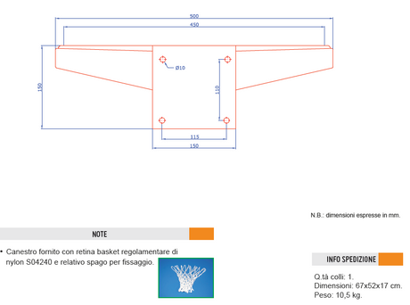Canestro regolamentare in acciaio zincato per esterno S04238