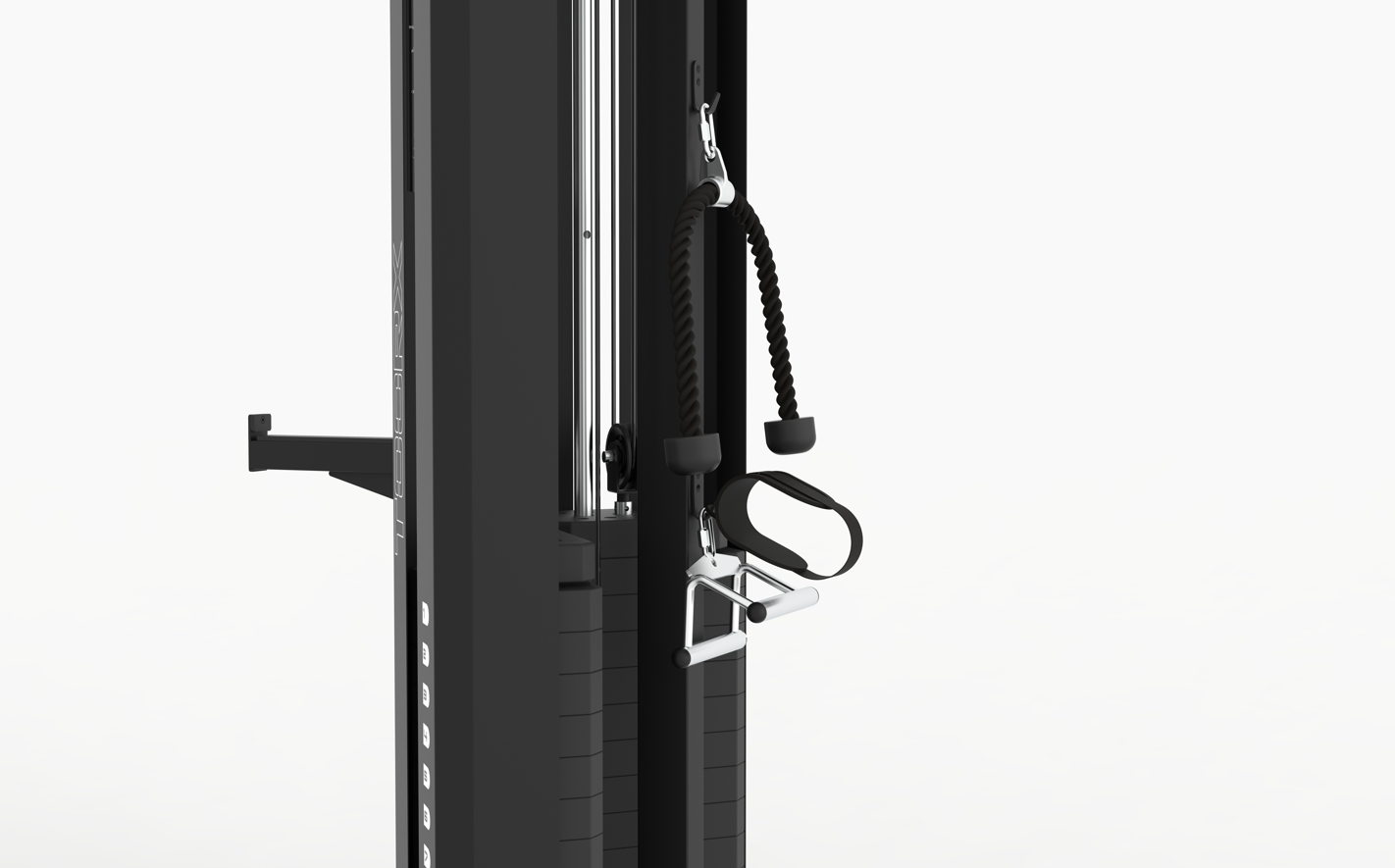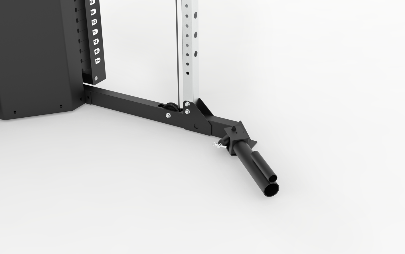 DOTAZIONE Landmine, Fermi di sicurezza, J-hook, Maniglia trazioni, Cavigliera, Barra bicipiti, Corda doppia per tricipiti, Impugnatura regolabile e Lat Bar incluse