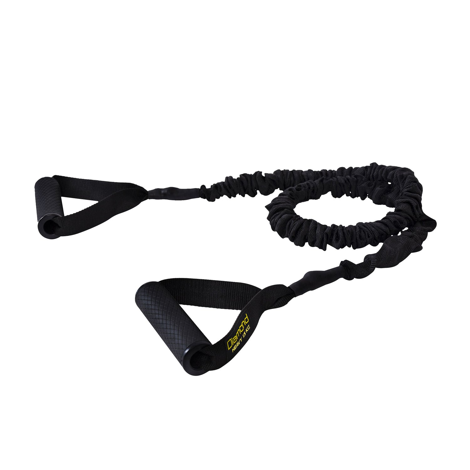 Elastico interamente rivestito da un tubolare di tessuto in nylon. Completo di maniglie con impugnatura gommata antiscivolo che garantisce una presa solida. Disponibile in 4 resistenze diverse.