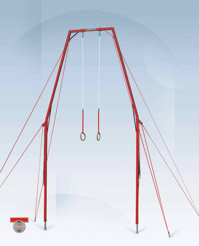 Castello per anelli in acciaio verniciato, completo di tiranti tenditori ed attacchi a terra per ancoraggio.(anelli e funi escluse)