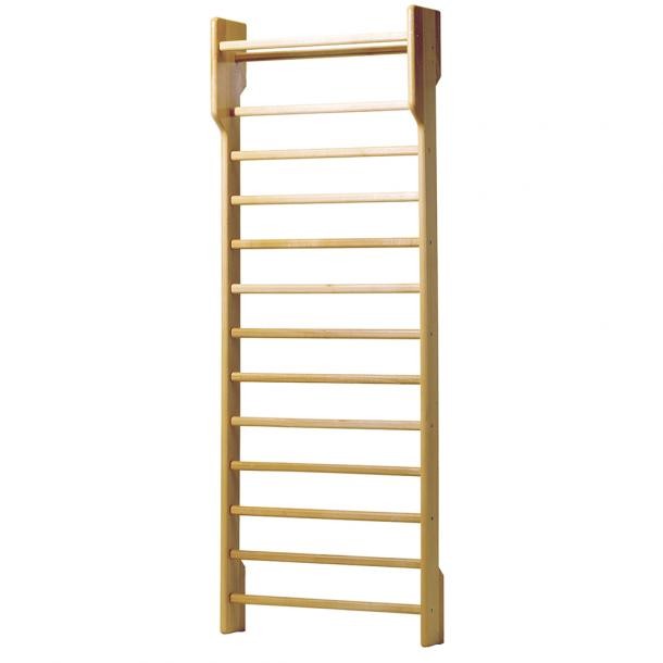 In faggio, spalle sagomate in massello di faggio spessore mm 30, n° 14 pioli in faggio sez ovale mm 40x30, verniciatura al naturale, pioli superiori uno sporgente e l’altro rientrante, attacchi per fissaggio a parete con tasselli, mis cm 90x250 (escluso tasselli).