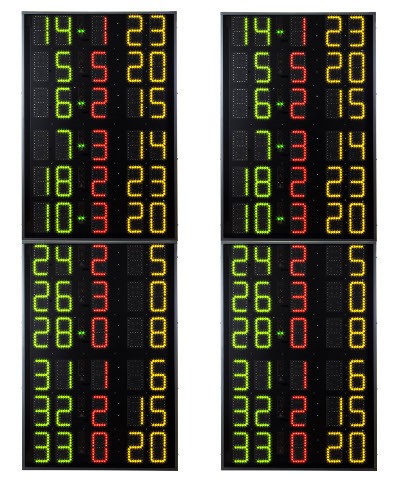 Coppia di pannelli laterali (guanciali), che visualizzano il N.ro di maglia, i Falli/Penalità ed i Punti dei 12 giocatori delle 2 squadre.