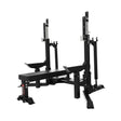 Panca professionale progettata per il powerlifting e l’allenamento con carichi pesanti. Dotata di porta bilanciere regolabile su diverse altezze e postazione di appoggio bilanciere con sistema rotante per la massima comodità di utilizzo e salvaguardia del bilanciere. Le barre di sicurezza (safety bars) anch’esse regolabili su diverse altezze così da adattarsi a tutti gli utenti e per garantire allenamenti intensivi in totale sicurezza. La panca è inoltre dotata di braccia esterne per il sollevamento assistito del bilanciere da parte di uno spotter che può sostare nelle ampie e comode pedane poggiapiedi in testa alla panca. Perfetta per palestre, box di allenamento funzionale o home gym di livello avanzato.