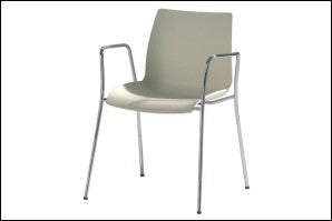 Sedia ola impilabile con braccioli per ambienti casa composta da scocca stampata in polipropilene e struttura in acciaio cromato ad altissima resistenza.