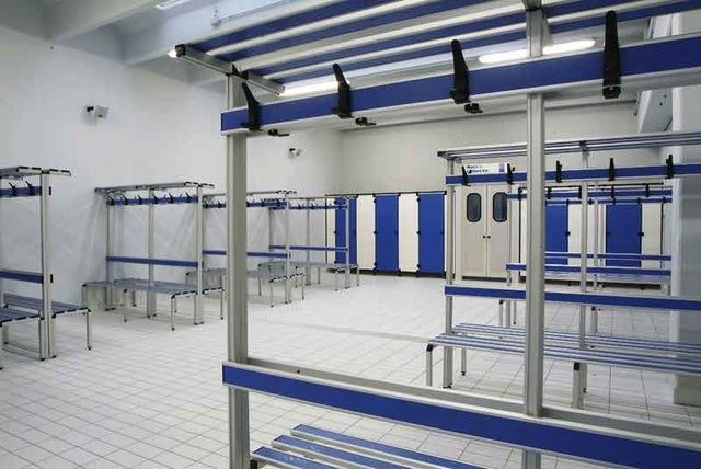 Panchina spogliatoio da mt 2, modello ad isola per posizionamento a centro locale.