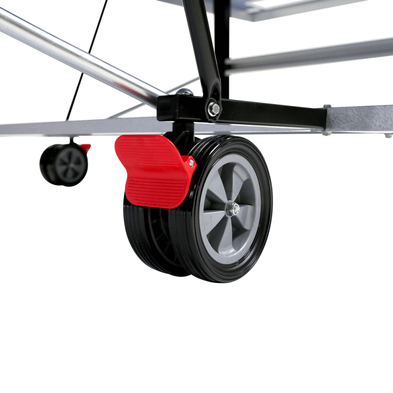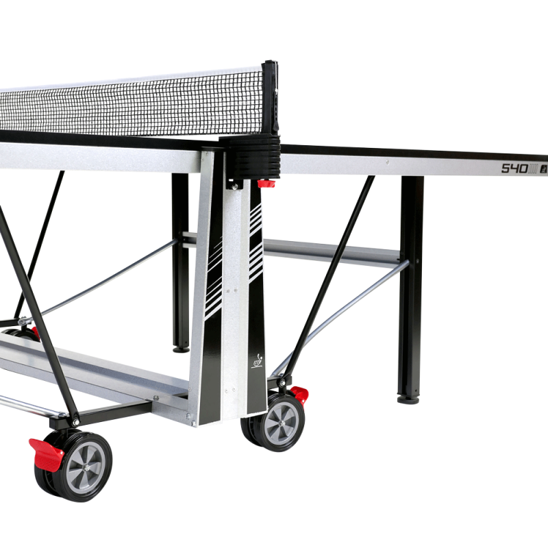 - Il tavolo da competizione ITTF 540 è dotato di 4 ruote doppie con pneumatici. Queste ruote offrono una buona qualità di movimento in ambienti chiusi.
