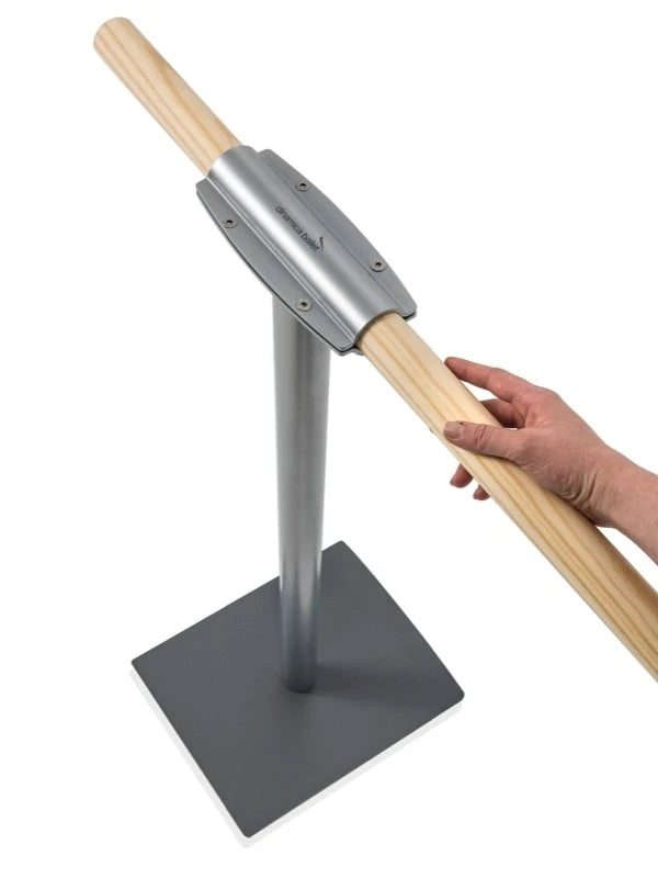 In entrambi i casi, le basi sono dotate di protezioni di PVC per evitare ogni possibile danno anche sui pavimenti più delicati. Se devi portare la tua sbarra Avant in tournée o hai bisogno di spostarla spesso, ti consigliamo la base con le ruote, se invece pensi che la sposterai solo occasionalmente o con l’aiuto di un’altra persona, allora le basi piatte potrebbero fare per te. Il peso totale dell’insieme con le basi con ruote, con una sbarra di legno di 2m, é di 48 kg. Il peso dell’insieme con le basi piatte senza ruote é di 32 kg.