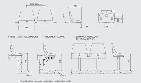 Seduta monoblocco per impianti sportivi e stadio M2009 M2009 SMALL profondità cm 30
