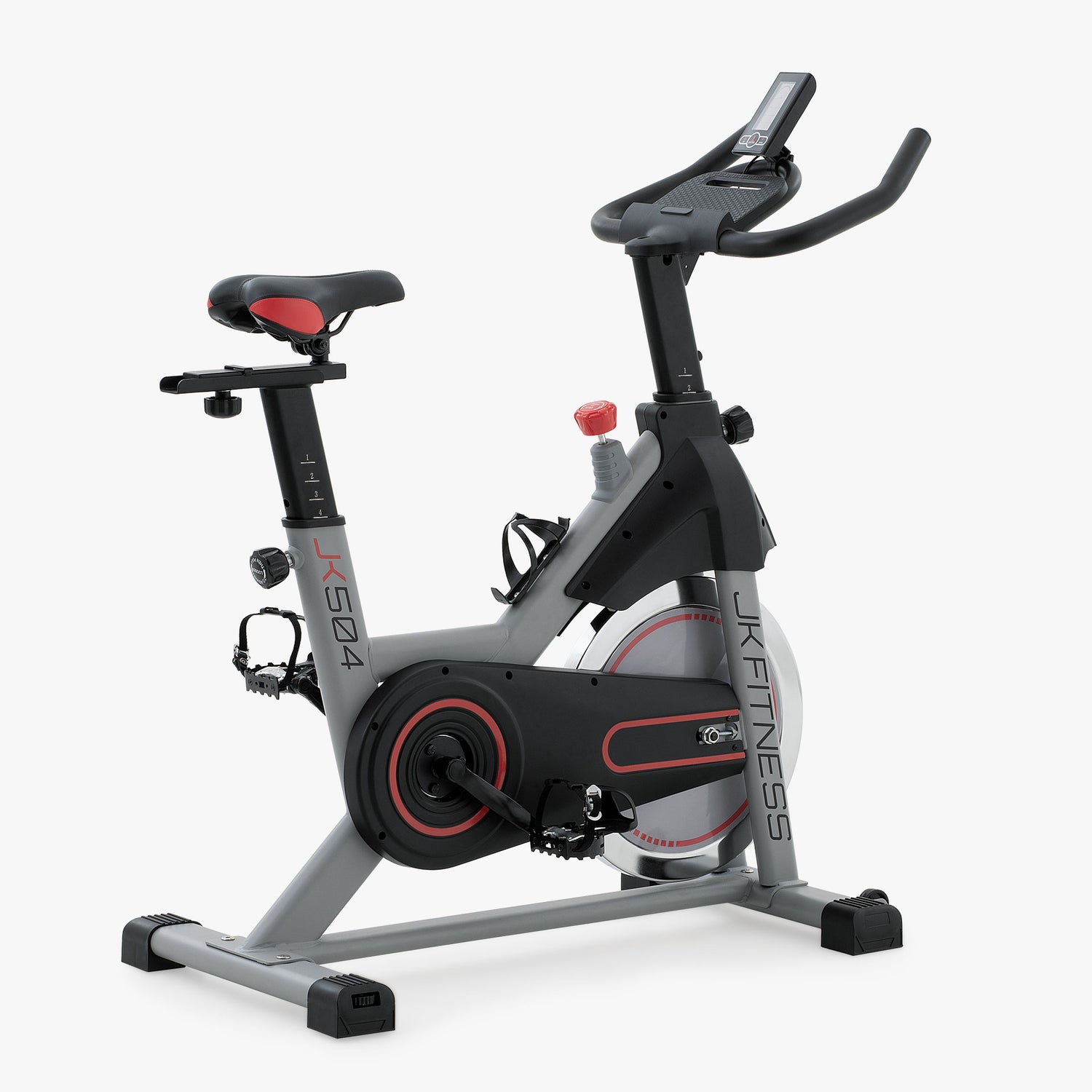 La gym bike JK 504 è dotata di ciclo-computer con display LCD multi-informazione è abbinato anche ad un supporto porta cellulare / tablet e permette di monitorare in tempo reale tutti i parametri dell’allenamento, quali: tempo, distanza, velocità, RPM, calorie e frequenza cardiaca.