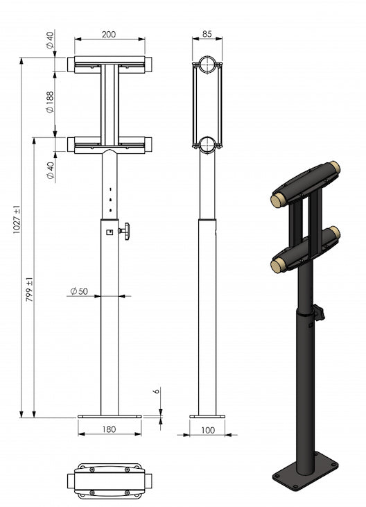 - I supporti superiori di fissaggio a forma di cilindro evitano che la sbarra si muova o fuoriesca dalla sua posizione