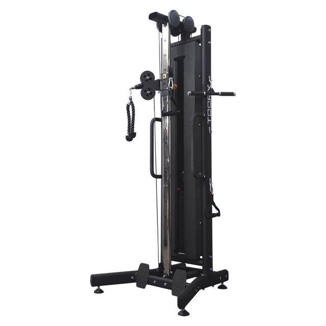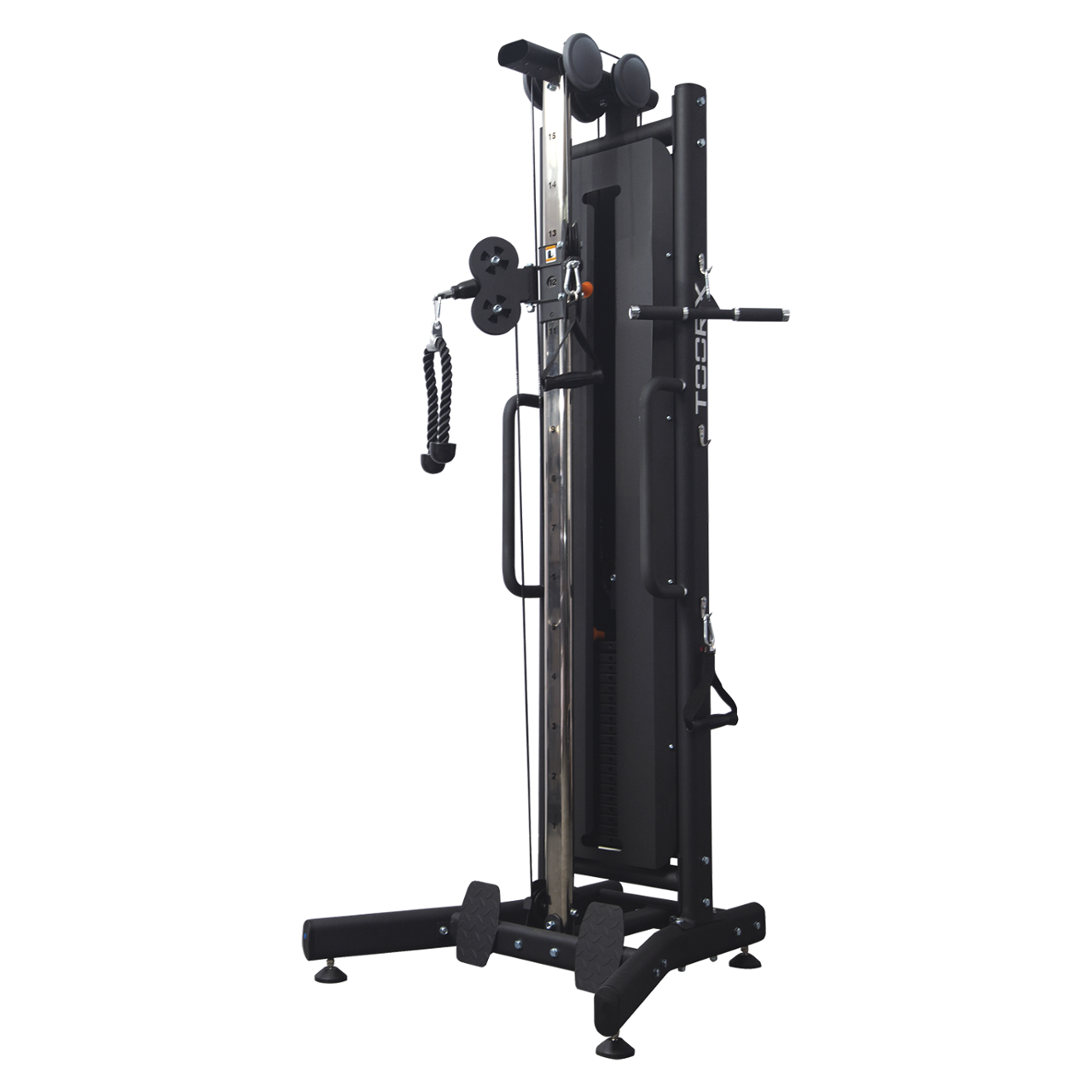 Nuova Single Pulley professionale a marchio Toorx. Il modello CSX 2000 ha un pacco pesi di 70 kg in acciaio (con carter di protezione integrale). Il sistema di cavi è in acciaio rivestiti in poliuterano con sistema di carrucole e pulegge con cuscinetti Power Grade per uno scorrimento preciso e progressivo.