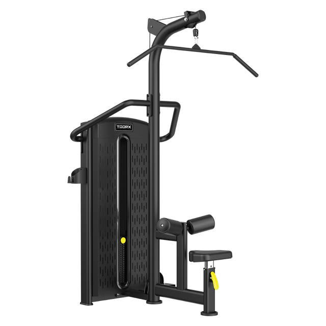 La PLX-4500 di Toorx, parte delle linee Vertical e Aktiv, è una lat machine robusta e pensata per uso professionale in palestre e centri fitness. Grazie alla sua struttura rinforzata e a un pacco pesi integrato da 120 kg, questa macchina permette di eseguire esercizi mirati per il potenziamento dei muscoli della schiena, delle spalle e delle braccia.