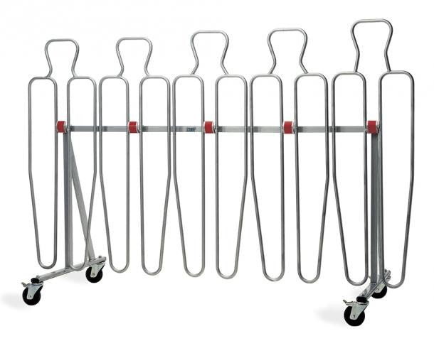 In acciaio zincato a caldo, 5 sagome oscillanti di varie altezze, 4 ruote diam cm 12,5 con freno, mis. cm 270xh 172/180.