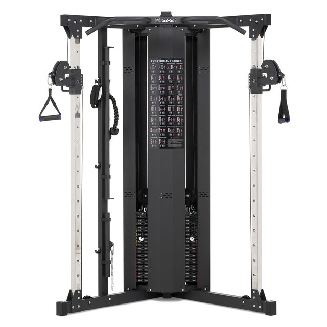 • Caratteristiche Sistema a doppia puleggia regolabile. Design angolare compatto ed efficiente in termini di spazio; si adatta facilmente a qualsiasi area di lavoro. Stazioni della puleggia regolabile in 16 altezze.