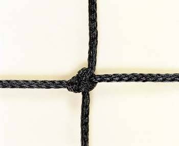 Treccia HDPE da mm. 4 trattata contro raggi UV, per uso esterno, colore nero, fascia superiore in PVC bianco da cm 7 con doppia cucitura, fascie laterali porta distanziatori, distanziatori in vetroresina, fascia inferiore da cm. 5, maglia quadra mm 100x100, misura rete cm 950x100, carico rottura kg 150, cavo in acciaio plastificato mm 6, corde laterali per trazione, peso kg 6 circa. A norma EN 1271 classe A.