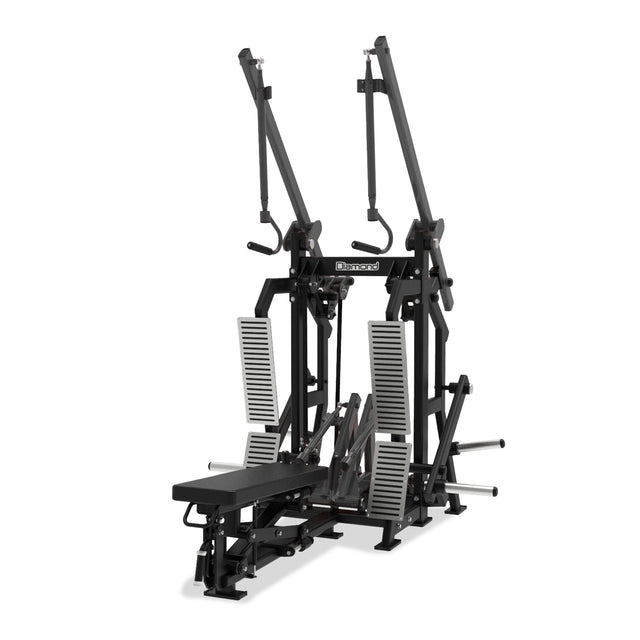 Il Combo Lat Pulldown / Pulley Row DIAMOND è un macchinario innovativo che permette di lavorare i muscoli della schiena in maniera ottimale offrendo 2 esercizi cardini nella stessa macchina, così da poter lavorare anche in super set. Le impugnature ergonomiche rotanti consentono un movimento naturale definito dall’utente, una maggiore varietà e un maggiore coinvolgimento muscolare. Ampie pedane di appoggio piedi per il massimo sostegno durante tutto l’arco dell’esercizio. 2 perni portadischi per uno stoccaggio facile ed immediato.