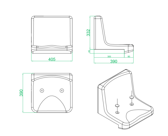 Il modello MARSIGLIA è una seduta monoblocco dotata di nervature di rinforzo trasversali e