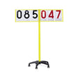 SEGNAPUNTI METEORE A STELO 6 TABELLE, telaio verticale in acciaio diam mm 50 verniciato epoxi, telaio porta tabelle girevole, base con ruote per trasporto, 6 tabelle METEORE ( 3 nere + 3 rosse) composizione punteggio istantanea, visualizzazione a tendina