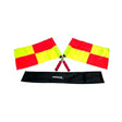 Composto da due aste in alluminio con impugnatura morbida, 2 drappi giallo/rosso rotanti, custodia.