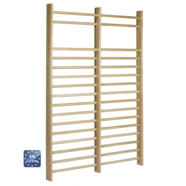 Spalle dritte in pino spess. mm 33, n° 16 pioli ovali in faggio mm 40x30, mis. cm 180x260, verniciatura al naturale, attacchi per fissaggio a parete con tasselli, a norma UNI EN 12346 (escluso tasselli).