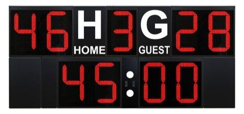 Tempo di gioco: [00:00 - 99:59], cifre alte 45cm. Inoltre visualizza i set/game vinti [0 - 4] nella pallavolo e tennis.