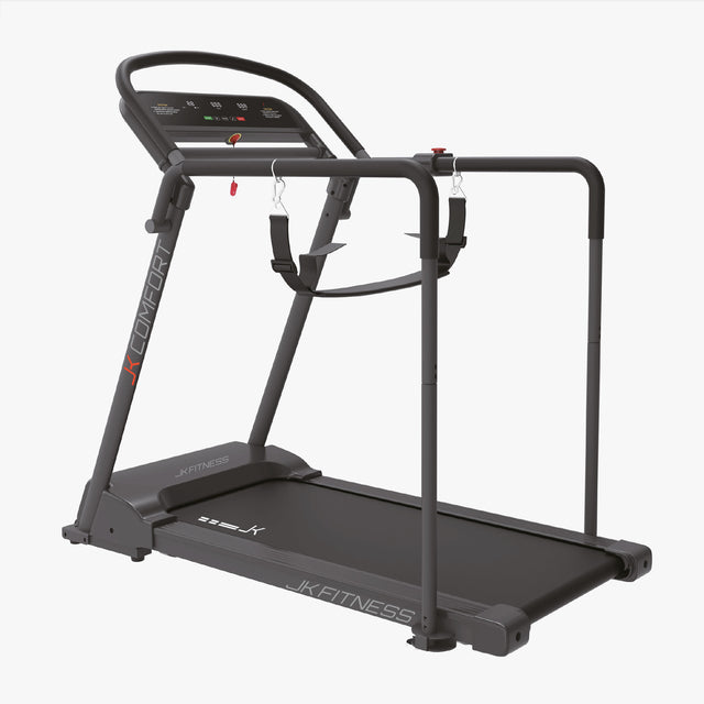 Il nuovo tapis roulant JK Comfort è il nuovo camminatore della gamma JK home fitness, ottimo compromesso fra prestazioni e dimensioni per chi vuole un prodotto versatile e sicuro, perfetto per chi cerca il massimo comfort per camminare in piana sicurezza.
