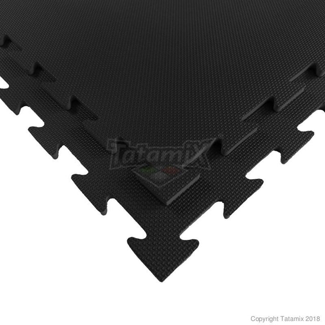 Realizzato in EVA espansa (etilene vinil acetato), a cellula chiusa monodensità, stampato e tagliato mediante fustellatura in uno speciale sistema ad incastro. La finitura antiscivolo è ottenuta a caldo sulla superficie, creando un effetto pellicola che agevola le operazioni di pulizia del prodotto. Il tatami è monolore compresivo di cornici perimetrali.